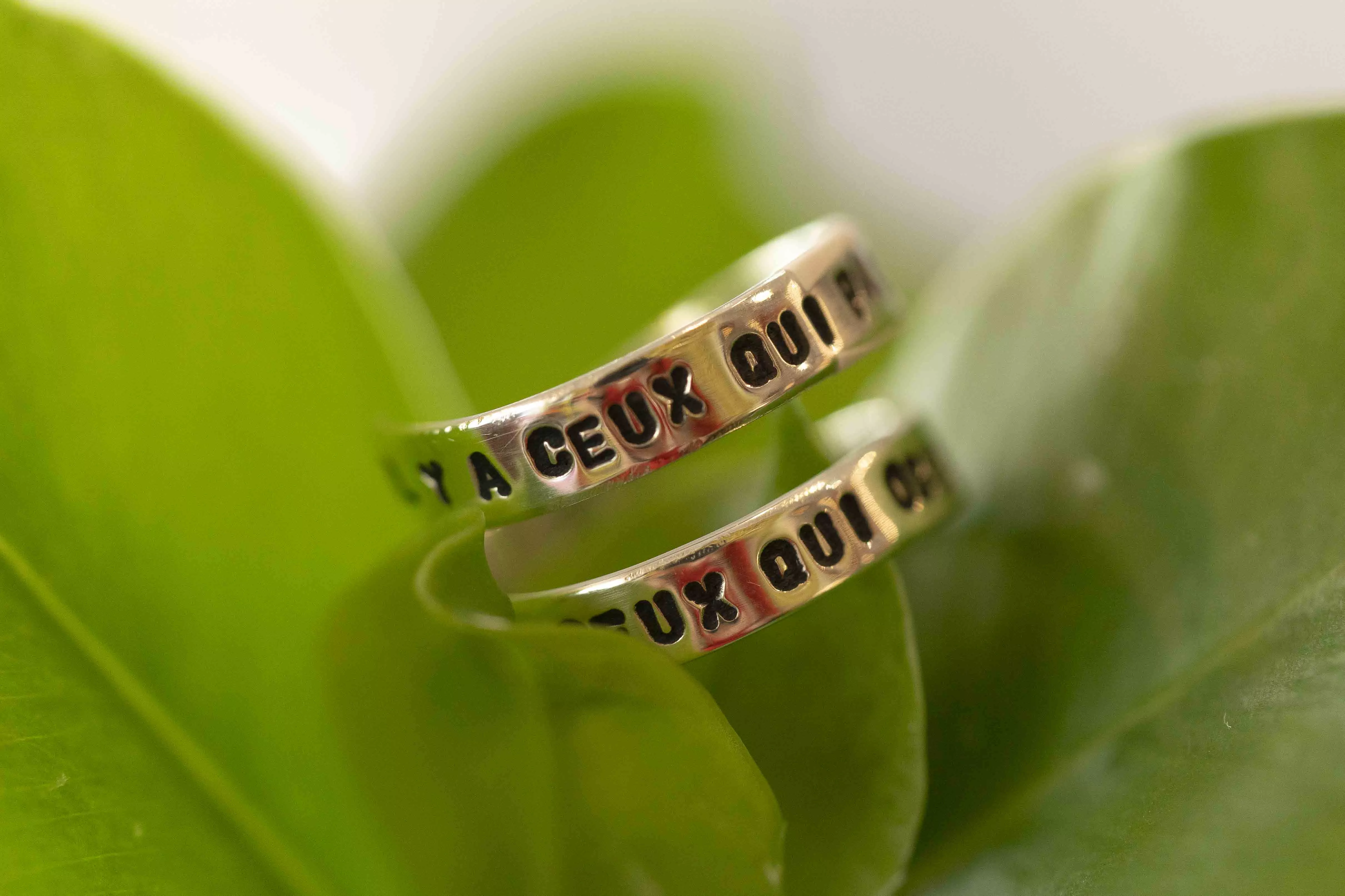 Modèle disponible pour la personnalisation. Vous pouvez choisir le texte et la taille de la bague.