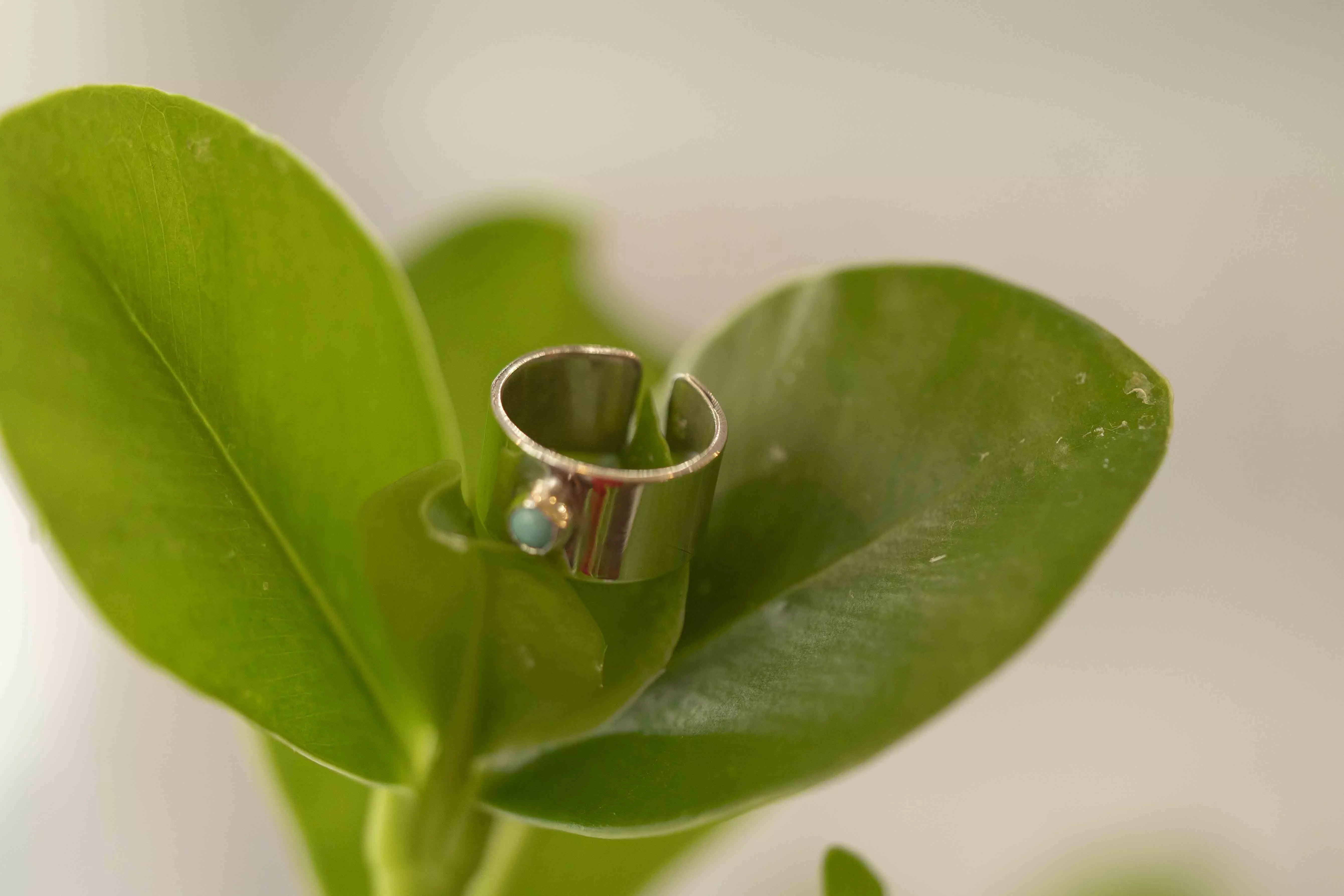 Bague phalange, argent 950, faite par Cindy, à Lausanne. Turquoise sertie.
